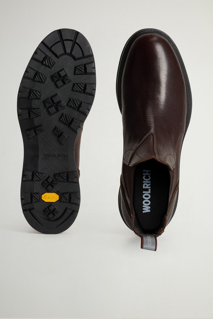 A timeless outdoor staple reimagined with refined craftsmanship that reflects the excellence of Made in Italy. The upper is crafted from hand-worked cowhide leather, enriched with exposed stitching and a heat-embossed “W” on the side. The tonal elastic insert and reflective loop at the back, personalized with a screen-printed logo, offer practical functionality. Cotton herringbone binding underscores the attention to detail. The exclusive Woolrich Wool City outsole, inspired by the 1937 Vibram “Carrarmato,” features a Buffalo Check tread and a dual-density compound: Megagrip rubber for grip and lightweight PU for cushioning. Removable insole for enhanced comfort.